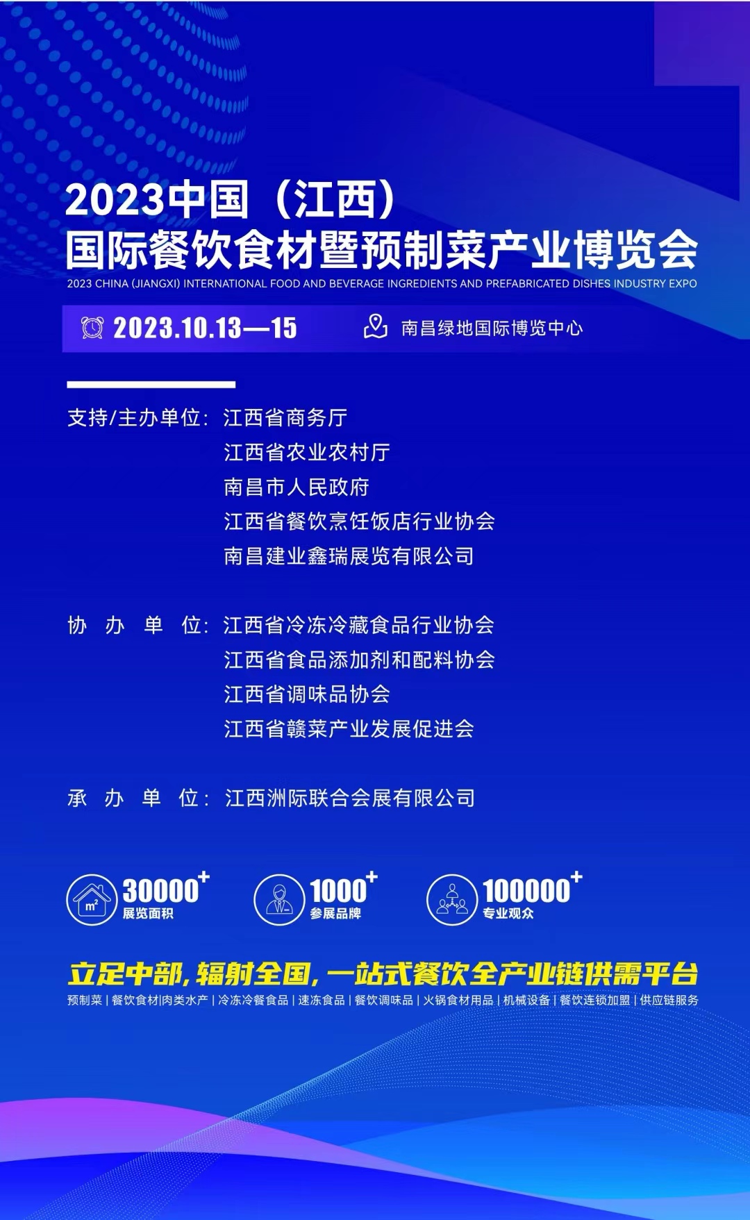 “2023中国(江西)餐饮食材展暨预制菜产业博览会”将于11月10日-12日在江西南昌绿地国际会展中心隆重举行!本次展会由江西南昌建业鑫瑞展览有限公司承办,1000家餐饮品牌 ,聚焦预制菜革命,助推预制菜赛道跑出国民级品牌旨在深度探索和思考预制菜行业。