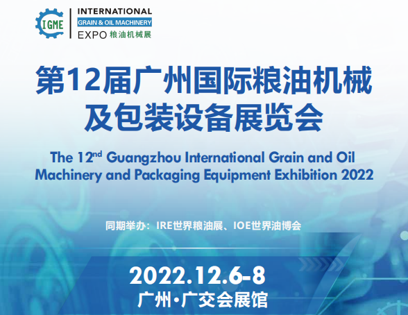 广州国际粮油机械及包装设备展览会(IGME世界粮油机械展)创办于2011年,与广州国际食用油及橄榄油产业博览会(IOE世界油博会)、广州国际优质大米及品牌杂粮展览会(IRE世界粮油展)同期举办。IGME世界粮油机械展致力于为业内人士搭建一个技术交流、促进合作、扩大上下游贸易、提高品牌和企业知名度的平台,携手打造粮油机械行业权威、专业的商贸采购盛宴。